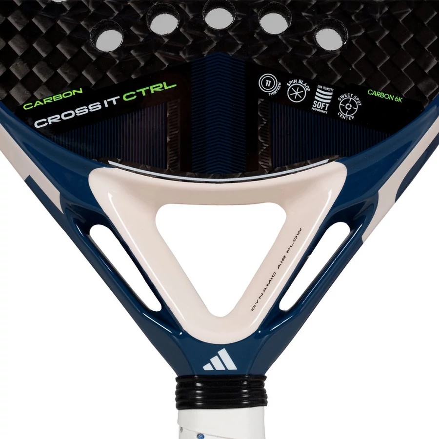 Szint: PRO Forma: Kerek Súly: 360–375 g Vastagság: 38 mm Hossz: 455 mm Technológiák: Dynamic Air Flow, Spin Blade Decal, Smart Holes Curve, Power Extra Grip, Structural Reinforcement Anyagok: 6K karbon felület, EVA Soft Performance mag Célcsoport: Haladó és profi játékosok Ideális játékstílus: Kontrollált, technikai alapú játék Az Adidas Cross It Carbon Ctrl padelütő a 2025-ös szezon egyik kiemelkedő modellje, amely a könnyű súly és a kiváló irányíthatóság kombinációját kínálja. A kerek forma és az egyensúlyos súlyelosztás ideálissá teszi a középhaladó és haladó szintű játékosok számára. Az EVA Soft Performance mag és az üvegszálas felület kényelmes érzetet és gyors labdareakciót biztosít. A Dynamic Air Flow technológia csökkenti a légellenállást, elősegítve a gyors mozgásokat, míg a Smart Holes Curve és a Spin Blade Decal növeli a kontrollt és a pörgetést. A Power Extra Grip és a Structural Reinforcement technológiák javítják a teljesítményt és a tartósságot. Ez az ütő ideális választás azoknak, akik a kontrollt és a kényelmet helyezik előtérbe játékukban.
