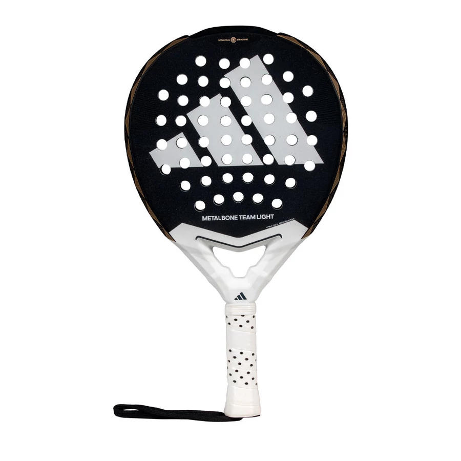 Az Adidas Metalbone Team Light 3.4 padelütő ideális választás középhaladó és haladó játékosoknak, akik gyors, dinamikus játékot kedvelnek, de a könnyű kezelhetőséget is fontosnak tartják. Csepp alakú kialakítása és optimalizált súlyelosztása biztosítja a precíz irányítást és a könnyű manőverezhetőséget minden ütésnél. Főbb jellemzők: Forma: csepp alak, ideális egyensúly erő és kontroll között Súly: 345–360 g, könnyen kezelhető és gyors reakcióhoz Vastagság: 38 mm, optimális teljesítmény és labdareakció Anyag: EVA High Memory hab, karbon megerősítés a stabilitásért Technológiák: Metalbone Carbon Frame, Smart Holes Curve, Power Embossed Ridge Célcsoport: középhaladó és haladó játékosok Játékstílus: gyors, technikai és precíz játék Ez az ütő azoknak a játékosoknak készült, akik a stabilitást, precíz irányítást és a könnyű kezelhetőséget szeretnék ötvözni az erőteljes, dinamikus játékhoz. Tartós, ergonomikus és versenyképes – ideális edzéshez és mérkőzésekhez.