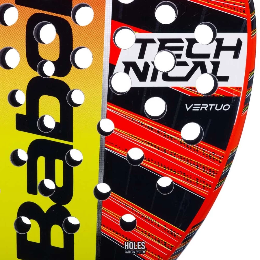 A Babolat Technical Vertuo 2023 ütő ideális választás a technikai támadó játékstílusú haladó játékosoknak. A gyémánt alakú fej és a közepesen puha ütőérzet támogatja az easy power kialakítását – vagyis erőteljes, mégis fáradtságmentes játékot. Az ütő kialakítása kompromisszumot nem tűr a teljesítmény és a kényelem között. Főbb jellemzők Forma: Gyémánt — támadáshoz ideális ütőforma, fejnehéz egyensúlyt kínál. Szerkezet: Felület: Soft Fiber – puha és rugalmas, könnyű ütést biztosít. Keret: 100 % karbon – stabil érzet, gyors reakció. Mag: Black EVA – rugalmas hab a komfortért és kontrollért. Technológiák: Easy Power – rugalmas anyagok az erőfeszítés nélküli játékért. Holes Pattern System – lyukelosztás optimalizált pontosságra. 3D Spin – textúrált felület a jobb pörgésért. Vibrabsorb System² – rezgéscsillapítás a komfort érdekében. Smart Buttcap – levehető csuklópánt, személyre szabható használat. Paraméterek: Súly: kb. 355 g (±10 g) Vastagság: 38 mm Egyensúly: semleges (medium) Kezelhetőség: könnyű, agilis játék még intenzív hétvégén is. Miért válaszd a Technical Vertuo-t? Könnyed erő: A Soft Fiber és EVA kombinációja kiemelkedően kényelmes, ugyanakkor dinamikus ütéseket biztosít. Támadó hatékonyság: A geopás formája és lyukmintája támogatja a pontos, döntő támadásokat. Játékkomfort: A rezgéscsillapító rendszer és könnyű szerkezet hosszú távú kényelmet nyújt. Kontroll és manőverezhetőség: Stabil, mégis könnyen mozgatott ütő, ideális stratégiához és gyors játékhoz.
