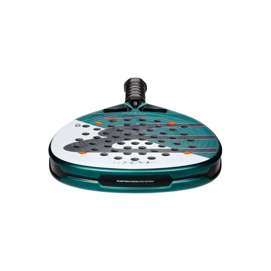 A Bullpadel Hack 04 25 2025 padelütő profi játékosok számára készült, akik a maximális erőt és precizitást keresik. Paquito Navarro hivatalos modellje a legújabb technológiákat ötvözi a kiemelkedő teljesítmény érdekében. Főbb jellemzők: Forma: Gyémánt Súly: 365–375 g Profil: 38 mm Játékfelület: 485 cm² Keret: 100% karbon (CarbonTube) Felület: TriCarbon 18K Mag: MultiEva Technológia: Total Carbon Tube, Hack 04 Játékstílus: Támadó Technológiai újítások: Total Carbon Tube: A teljes karbon váz maximális stabilitást és tartósságot biztosít. Hack 04: A fejrészen elhelyezett technológia növeli a pontosságot és a kontrollt. TriCarbon 18K: Háromszoros szénszálas felület a jobb pörgetés és labdakontroll érdekében. MultiEva: Két különböző sűrűségű EVA hab kombinációja optimális erőt és érzékenységet biztosít. Játékélmény: A gyémánt alakú fejforma és a fejnehéz kiegyensúlyozás robbanékony erőt biztosít, ideálissá téve a támadó játékstílust. A kemény érzetű váz és a nagy felület lehetővé teszi a precíz irányítást és a pontos ütéseket. A Hack 04 25 2025 a versenyszintű játékosok számára készült, akik a legjobb teljesítményt várják el ütőjüktől.
