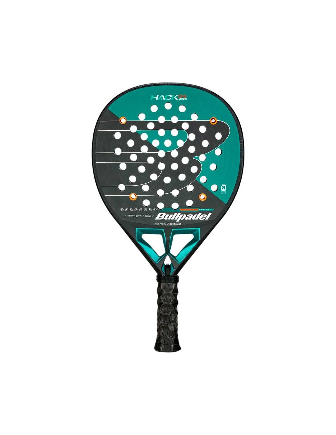 A Bullpadel Hack 04 Hybrid 25 padelütő a profi játékosok számára készült, akik a maximális erőt és precizitást keresik. Paquito Navarro hivatalos modellje, amely a legújabb technológiákat ötvözi a kiemelkedő teljesítmény érdekében. Főbb jellemzők: Súly: 365–375 g Profil: 38 mm Játékfelület: 529 cm² Keret: 100% karbon (CarbonTube) Felület: TriCarbon 18K Mag: MultiEva Technológia: Total Channel, Tricore, Air React Channel, Ease Vibe, Custom Weight, Smart Holes, 3D Grain, Hesacore, Vibradrive Játékstílus: Támadó Technológiai újítások: Total Channel: A keret körüli csatorna csökkenti az ellenállást, gyorsabb lendítést és nagyobb sebességet biztosítva. Tricore: Három különböző anyagú EVA hab kombinációja optimális erőt és érzékenységet biztosít. Air React Channel: Aerodinamikai csatorna, amely csökkenti a légellenállást, gyorsabb és precízebb válaszokat eredményezve. Ease Vibe: Csökkenti a vibrációkat, növelve a játék kényelmét és csökkentve a sérülés kockázatát. Custom Weight: Súlyozható lemezek, amelyek lehetővé teszik a kiegyensúlyozás módosítását a játékos igényei szerint. Smart Holes: Új lyukmintázat, amely növeli a pörgetést és a nagyobb ütőfelületet biztosít. 3D Grain: Rücskös felület, amely optimalizálja a pörgetési hatásokat. Hesacore: Ergonómikus markolat, amely csökkenti a kéz fáradtságát és a sérülés kockázatát. Vibradrive: Magas elasztikusságú anyag, amely elnyeli a vibrációkat, különösen a nem középen történő találatoknál. A hibrid forma és a fejnehéz kiegyensúlyozás robbanékony erőt biztosít, ideálissá téve a támadó játékstílust. A kemény érzetű váz és a nagy felület lehetővé teszi a precíz irányítást és a pontos ütéseket. A Hack 04 Hybrid 25 a versenyszintű játékosok számára készült, akik a legjobb teljesítményt várják el ütőjüktől.