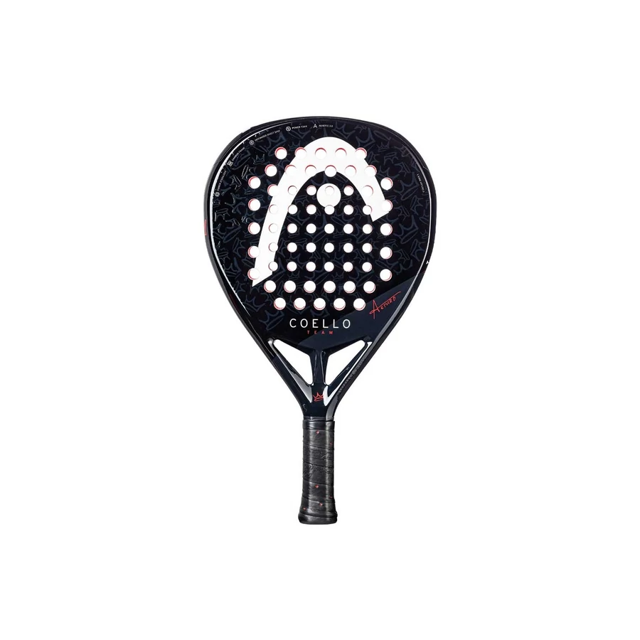 A HEAD Coello Team 2025 padel ütő a világelső Arturo Coello által tervezett ütő, amely a középhaladó és haladó szintű játékosok számára készült. Ez az ütő ideális választás azoknak, akik könnyedén szeretnének erőt generálni és kényelmesen játszani minden ütésnél. Főbb Jellemzők Forma: Gyémánt Súly: 375 g Egyensúly: 272 mm Profil: 38 mm Felület: Hibrid szövött karbon Mag: Power Foam Kerethossz: Graphene Inside Teljesítmény és Előnyök Erő és Kontroll: A gyémánt forma és a Power Foam mag kombinációja erőt és kontrollt biztosít minden ütésnél. Kiváló Érzet: Az Auxetic 2.0 technológia valós idejű, pontos visszajelzést ad, javítva a játékélményt. Tartósság: A Graphene Inside technológia megerősíti a keretet, növelve az ütő stabilitását és élettartamát. Kényelem: A hibrid szövött karbon felület csökkenti a vibrációkat, kényelmesebbé téve a játékot. Ezt az ütőt középhaladó és haladó szintű játékosoknak ajánljuk, akik gyors, erőteljes és pontos játékot keresnek. A HEAD Coello Team 2025 ideális választás azok számára, akik szeretnék fejleszteni technikájukat és kiemelkedni a pályán.