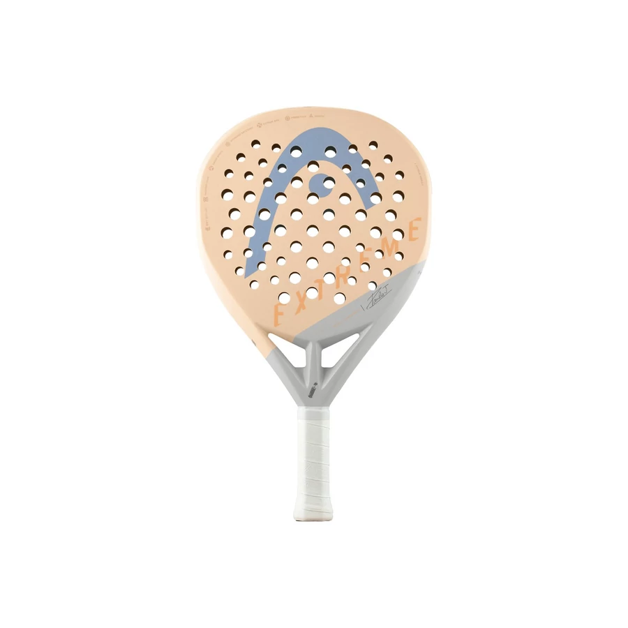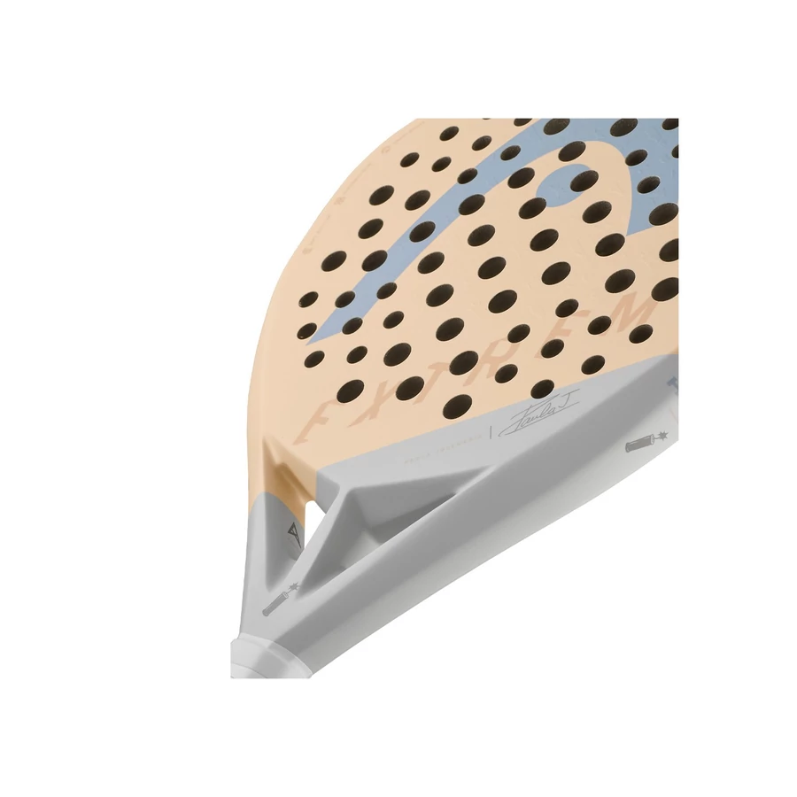 A Head Extreme Motion Paula Josemaría 2024 egy különleges, limitált kiadású padelütő, amelyet a világelső Paula Josemaría tervezett, karakteres stílusával és teljesítményével inspirálva. A gyémánt forma, a magas technológiai felszereltség és az elegáns, matt grafikás kivitelezés jellemzi. Főbb jellemzők és előnyök Forma & egyensúly Gyémánt alakja és fejnehéz kialakítása erőteljes smasheket tesz lehetővé, míg a 360 g súly (±10 g) még megőrzi a manőverezhetőséget. Sweet spot & pörgetés Optimalizált lyukelosztása növeli az ütőerőt, a 3D Spin felület pedig kivételesen magas pörgetést tesz lehetővé. Technológiák Auxetic technológia – ütéskor aktív reakciót ad, fokozva az érzékenységet és ütésérzetet. Hybrid Woven szerkezet – karbon és üvegszál kombinációja biztosítja a tartósságot és kontrollt. Power Foam mag – robbanékony ütésteljesítmény, mégis toleranciával reagál a játékhelyzetekre. Különleges dizájn A játékos által közösen tervezett matt felület, exkluzív színek, 3D textúrák és Paula aláírása emeli ki igazán egyedivé az ütőt. Ez az ütő tökéletes választás azok számára, akik támadó játékot preferálnak, és fontos számukra a robbanékony erő, nagy pörgetés és magabiztos kontroll. A gyémánt forma és a technológiai részletek együttesen biztosítják a gyors reakciókat az alapvonalról és a háló környékén egyaránt. Haladó és profi játékosok részére, akik az ütőerőt és technikai igényességet egy ütőben keresik. Olyan játékosoknak is kiváló, akik szeretnék fejleszteni támadó stílusukat és pörgetési repertoárjukat. Ideális azoknak, akik szeretik az exkluzív, dizájnorientált sportszereket – játék és egyediség együtt.