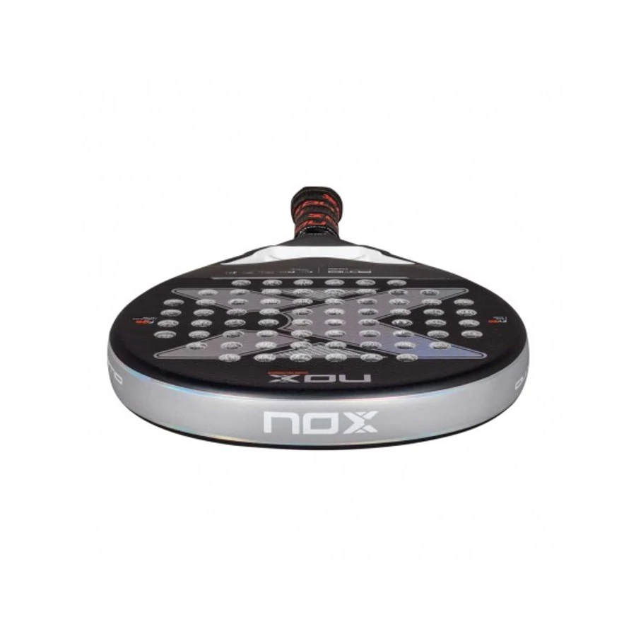 A NOX AT10 Pro Cup HARD 2025 padelütő Agustín Tapia profi játékos által ihletett modell, amely a maximális erőt és teljesítményt helyezi előtérbe. A legújabb generációs anyagok és technológiák kombinációja biztosítja a dinamikus és robbanékony játékstílust. Főbb jellemzők Forma: Csepp (Drop) Súly: 360–375 g Váz: 100% szénszál Mag: EV50 Felület: Metallizált üvegszál Felületi technológia: Rugged 3D Technológia: Photochromic Paint, Smartstrap®, Anti-vibrációs rendszer Photochromic Paint: A fogantyú közepén elhelyezett reakciófesték szinkronizálódik a gumi színével, harmonikus és figyelemfelkeltő megjelenést biztosítva. Smartstrap®: Cserélhető biztonsági rögzítő, amely higiénikusabbá és személyre szabhatóvá teszi az ütőt. Anti-vibrációs rendszer: Csökkenti a vibrációkat, javítva a kényelmet és csökkentve a sérülés kockázatát. Az AT10 Pro Cup HARD ideális választás haladó és profi játékosok számára, akik a maximális erőt és teljesítményt keresik. A cseppforma és az EV50 mag kombinációja robbanékony ütéseket és dinamikus játékot tesz lehetővé.