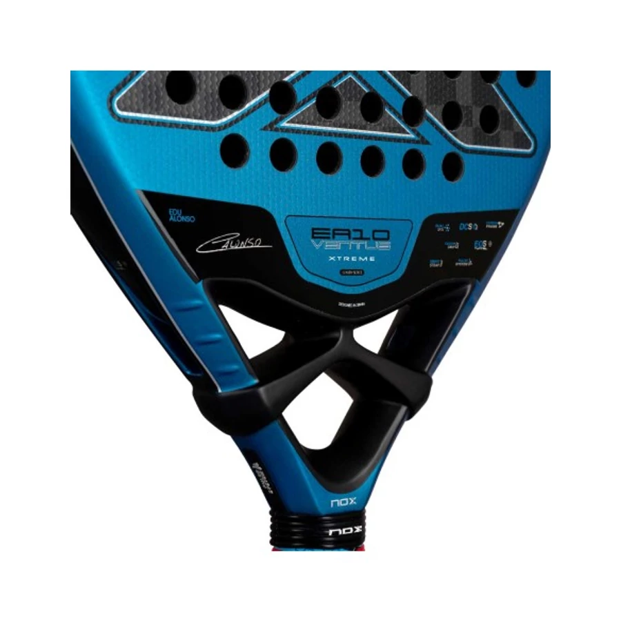Nox EA10 Ventus Attack 12K Xtrem 26 padel ütő – kompromisszummentes teljesítmény a támadójáték mestereinek. A Nox Ventus sorozatának legerősebb tagja, az EA10 Attack 12K Xtrem 26, a maximális ütőerőt és stabilitást kereső haladó, illetve profi játékosok számára készült. A 12K karbon felület extrém merevséget biztosít, így minden ütés robbanékony és precíz marad, míg a gyémánt forma segíti a támadó stílusú játékosokat a nagyobb erőátvitelben. A Multilayered Black Eva magtechnológia kiemelkedő labdaérzetet nyújt, az Xtrem 26 rezgéscsillapító rendszer pedig hatékonyan elnyeli a vibrációt, hogy az ütő kényelmes maradjon még hosszabb mérkőzéseken is. A Ventus perforációs rendszer optimalizálja a levegőáramlást, növelve az ütési sebességet és a pontosságot. ✅ Főbb jellemzők: 12K karbon felület a maximális erő és tartósság érdekében Gyémánt forma a nagyobb ütőerőhöz és agresszív játékoz Multilayered Black Eva mag a dinamikus labdaérzetért Xtrem 26 rezgéscsillapító rendszer a stabil és kényelmes fogásért Ventus perforációs kialakítás a gyorsabb lendítéshez Súly: kb. 360–375 g Szint: haladó / profi játékosok A Nox EA10 Ventus Attack 12K Xtrem 26 a pályán való dominanciára született – válaszd ezt az ütőt, ha minden pontnál az erő és a precizitás a célod!