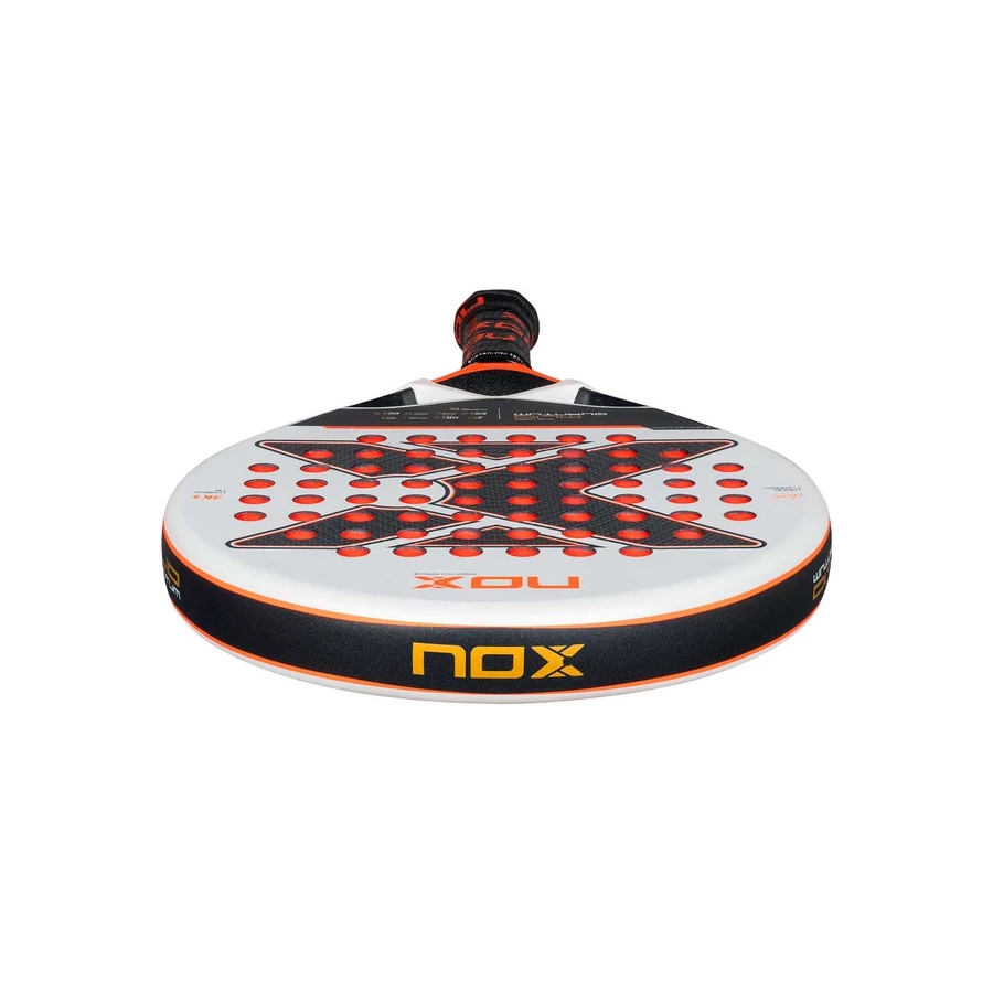 A NOX ML10 Quantum 3K Miguel Lamperti padelütő a 2025-ös szezonra tervezett prémium modell, amely a legendás játékos, Miguel Lamperti stílusát és igényeit tükrözi. Ez az ütő a NOX ikonikus HR3 gumit és 3K Főbb jellemzők Forma: Kerek Súly: 360–375 g Váz: 100% szénszál Mag: HR3 színváltós EVA Felület: 3K szénszál Technológia: EXCLUSIVE SPIN (3D hexagonális középen, homokos felület a széleken) Vibrációcsökkentés: NOX Custom Grip® és Pulse System Biztonság: Smartstrap® cserélhető rögzítő Technológiai újítások Photochromic Paint: A fogantyú közepén elhelyezett reakciófesték szinkronizálódik a gumi színével, harmonikus és figyelemfelkeltő megjelenést biztosítva. EXCLUSIVE SPIN: Kétféle felületi érdesítés kombinációja: középen 3D hexagonális minta, széleken homokos textúra, amely növeli a kontrollt és a pörgetést. EOS Flap: Oldalsó perforációk, amelyek javítják az irányíthatóságot és a súlyeloszlást, gyorsabbá és pontosabbá téve az ütőt. Az ML10 Quantum 3K ideális választás haladó és profi játékosok számára, akik a kontrollt és a precizitást helyezik előtérbe. A kerek forma és a közepes érzetű mag biztosítja a stabilitást és a megbízható teljesítményt minden játékszituációban. A NOX ML10 Quantum 3K Miguel Lamperti padelütő a legújabb technológiai újításokkal és prémium anyagokkal készült, hogy a legmagasabb szintű játékélményt nyújtsa. Ha Ön is a legjobbra törekszik a pályán, ez az ütő nem okoz csalódást.