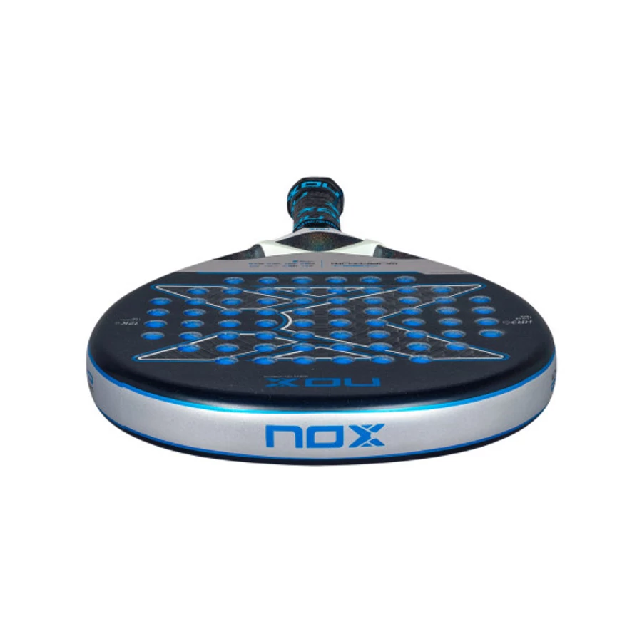 A NOX Quantum 12K Cobalt 2025 padelütő a legújabb fejlesztésű modell a Quantum sorozatban, amely a teljesítményt és a precizitást ötvözi a legújabb technológiai újításokkal. Ez az ütő ideális választás azoknak a haladó és profi játékosoknak, akik a támadó stílust és a kontrollált erőt keresik. Főbb jellemzők Forma: Csepp (teardrop) Súly: 360–375 g Váz: 100% szénszál Mag: HR3 EVA Felület: 12K szénszál Felületi technológia: Rough sand finish Technológia: Smartstrap® Szín: Fekete és kék dizájn 12K szénszálas felület: Nagy sűrűségű szálak biztosítanak kiemelkedő merevséget és tartósságot, növelve a támadóerőt. HR3 EVA mag: Kiváló ütéselnyelés és kontrollált érzés a játék során. Rough sand finish: Kettős érdesítésű felület a pörgetés és kontroll növelésére. Smartstrap®: Cserélhető biztonsági rögzítő, amely higiénikusabbá és személyre szabhatóvá teszi az ütőt. EOS Flap technológia: Oldalsó perforációk a jobb aerodinamika és súlyelosztás érdekében. A Quantum 12K Cobalt kiemelkedő sebességet és precizitást biztosít. A csepp forma és a HR3 EVA mag kombinációja lehetővé teszi a pontos és kontrollált ütéseket, miközben a fejlett technológiák és anyagok kombinációja kiváló érzékenységet biztosít a játékosok számára.