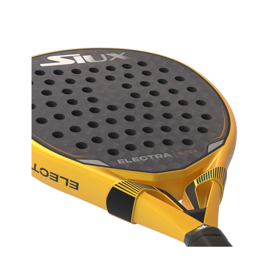 A Siux Electra Elite 4 2025 padelütő a legújabb fejlesztés a Siux prémium sorozatában, amelyet haladó és profi játékosok számára terveztek. Ez a modell a hybrid forma és a közép-magas egyensúly kombinációjával kiemelkedő manőverezhetőséget és erőteljes ütéseket biztosít. Főbb jellemzők: Forma: Hybrid Profil: 38 mm Mag: EVA Hard Felület: 12K karbon Váz: 3K karbon Súly: 355–375 g Finish: Matt, homokos Játékstílus: Támadó és kontrollált Ideális játékos: Haladó és profi szintű játékosok A 12K karbon felület és az EVA Hard mag kombinációja erőteljes és pontos ütéseket eredményez, míg a 3K karbon váz fokozza a merevséget és a stabilitást. A homokos felület extra pörgetést biztosít, ideálissá téve az ütőt a technikai és támadó játékhoz. Ez az ütő ideális választás azok számára, akik a precizitást, az erőt és a gyors manőverezhetőséget keresik játékuk során. A prémium anyagok és a fejlett technológia garantálja a kiváló játékélményt minden pályán.
